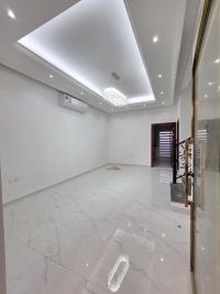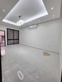 For rent in Al - Halio 2 area, directly on a main street, a townhouse villa consisting of 5 master bedrooms, a living room, a Majlis, a main kitchen, a maid's room, and a roof terrace. The price is 85000, payable in four installments