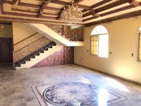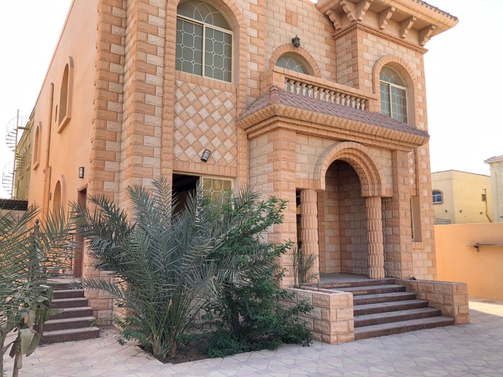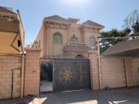Luxury villa for rent in Ajman, Al Rawda 2, just second plot from Sheikh Ammar Street, located on a paved road. Features 2 floors plus roof, 5 master bedrooms, hall, Majlis, equipped kitchen, maid room, and a spacious yard. Total area 4500 SqFt, clean finishing, ready to move in. rent AED130000 yearly