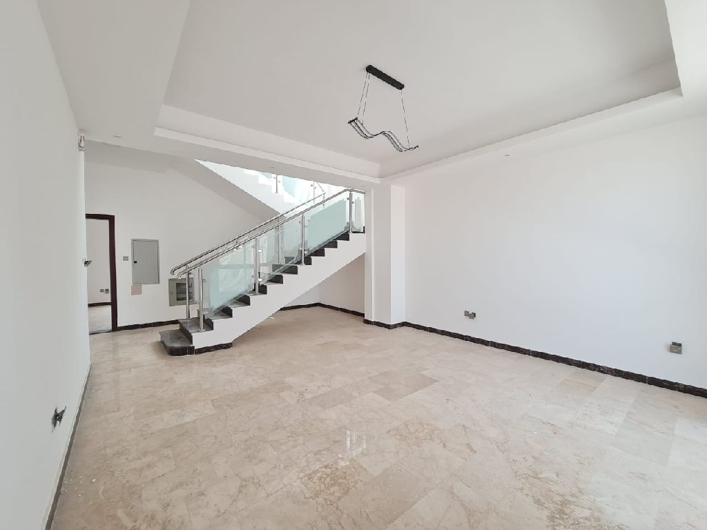 Luxury villa for rent in Ajman, Al Zahiyah area, first occupancy, with 5 master bedrooms, a Majlis, a living room, and a large ground - floor kitchen. asking price AED95000 (negotiable)