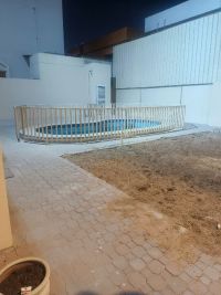 Luxury villa for annual rent - Rumaila, Ajman. Upscale living near the sea in a prime location. Rumaila - second row from Ajman Corniche. 5 bedrooms, 2 master bedrooms. Spacious living room. 2 fully equipped kitchens. Private swimming pool. Parking available. Spacious and suitable for families. Close to the Corniche, services, and restaurants. Annual rent is only AED110000, payable in four