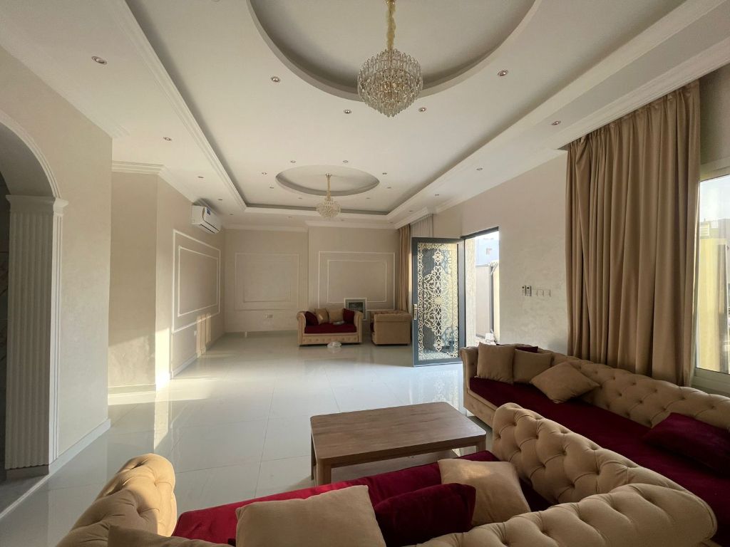 Villa for rent in Al Zahia, second occupancy, in a prime and quiet location. Land area 3014 SqFt, with electricity included. Features good finishing and spacious areas suitable for family living. Consists of three master bedrooms, a large living room, a spacious Majlis, and a private courtyard that provides privacy and comfort. It is strategically located close to all essential services and vital facilities