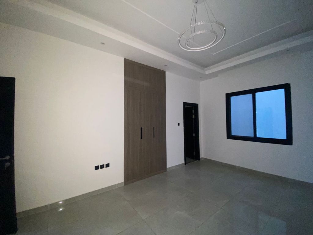 Luxury Villa for rent In Al Yasmin District A luxurious villa with beautiful, modern finishes The Villa consists of 4 master bedrooms with high - end finishes, all with built - in wardrobes A luxurious Majlis (formal sitting room) A large living room A fully equipped kitchen A preparation kitchen upstairs A maid's room Indoor parking 4 outdoor parking spaces A rooftop terrace with a beautiful view