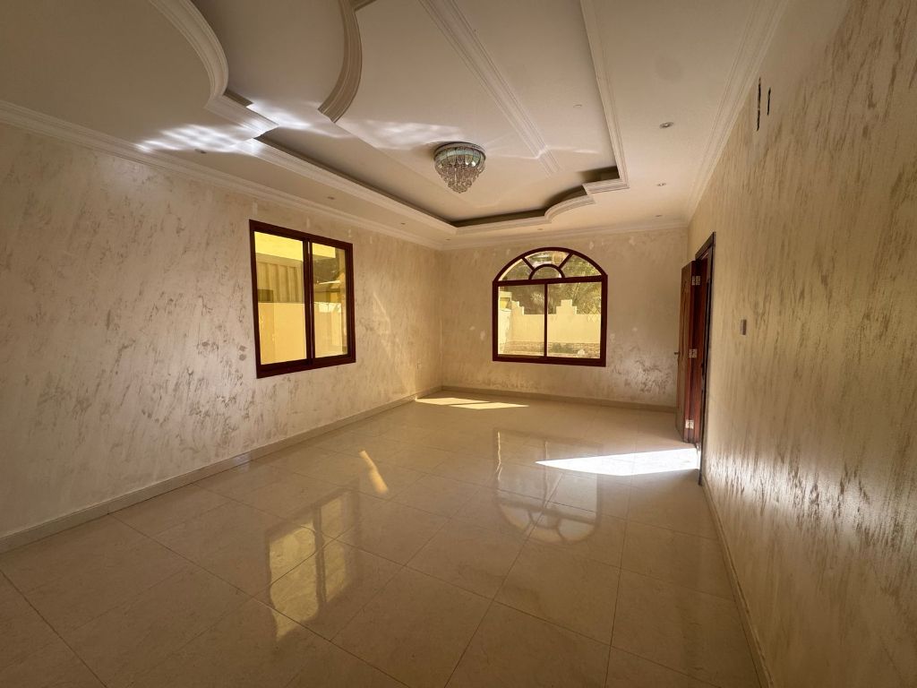 Villa for rent in Al Al Mwaihat 2, Ajman, suitable for residential or commercial use. The Villa has 5 bedrooms, each with an attached bathroom, 2 fully equipped kitchens, and a large reception area. Total area is 5000 SqFt with indoor and outdoor parking, plus a garden for relaxation or family activities. Accepts all nationalities. Payment can be divided into 3 or 4 cheques, security deposit AED5000