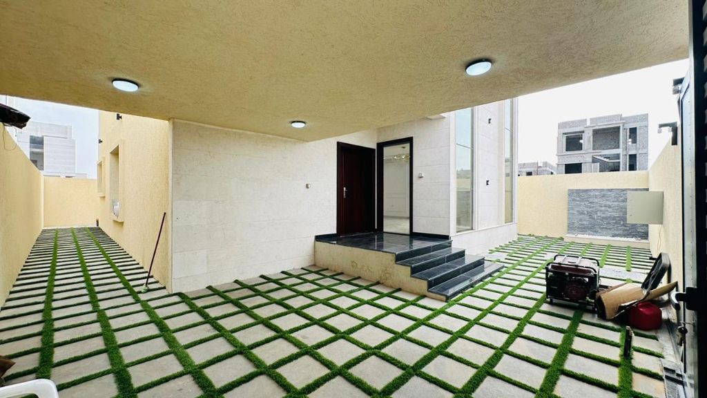 Villa for annual rent in Al Bahia, Ajman 5 master bedrooms Majlis (formal sitting room) Long living room with balcony Maid's room Large kitchen Large garden Shaded indoor parking Large setback in front of The Villa Completely residential area Second street from the main road Price AED90000 (final) 4 installments Security deposit (cheque)