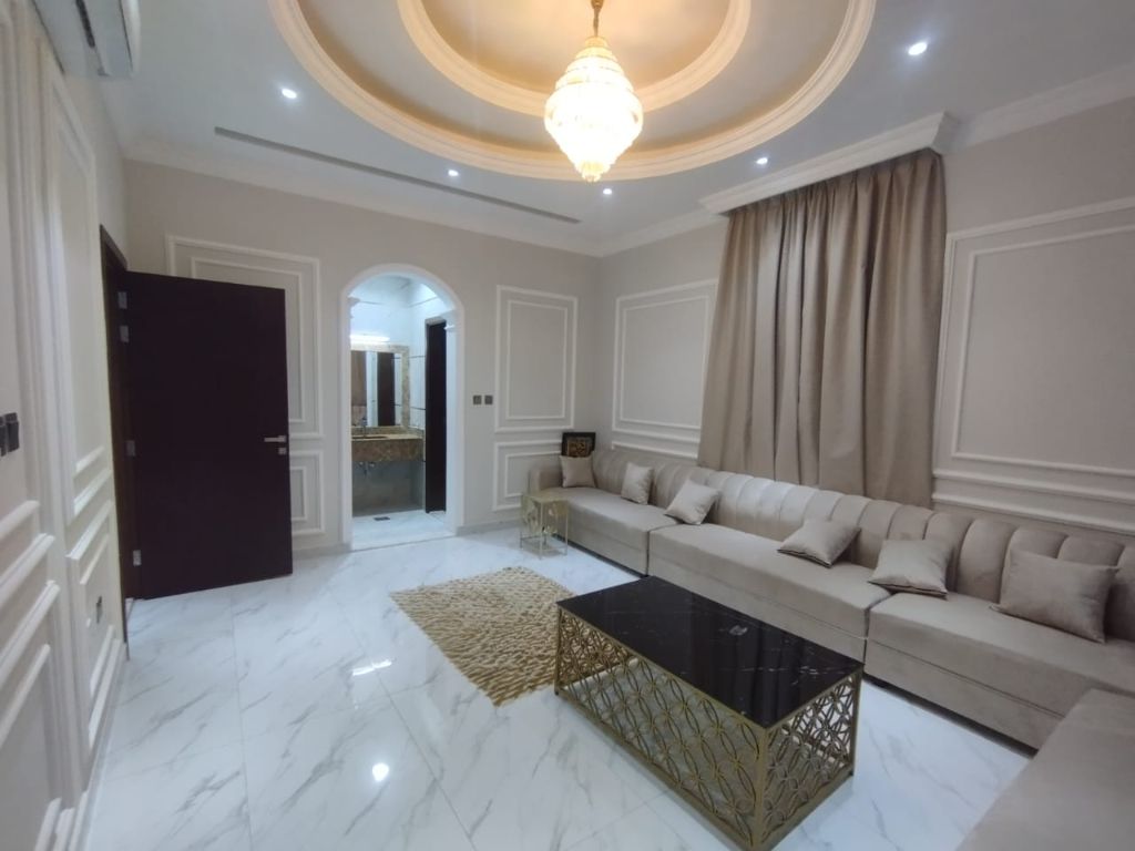 Furnished villa for monthly rent in Al Yasmin, Ajman, including all bills. Two floors, 5 master bedrooms, living room, Majlis, 6 bathrooms, air conditioning, brand new furnishings, and parking. Price AED16000 (all bills included)