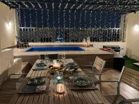 A unique opportunity for upscale living in a fully furnished villa in a quiet and privileged location in Al Zahia area - Ajman. The Villa consists of 5 spacious master bedrooms, a comfortable living room, an elegant sitting room to receive guests, in addition to two fully equipped kitchens to meet all your daily needs. The Villa also includes a wonderful terrace with a private pool that provides y