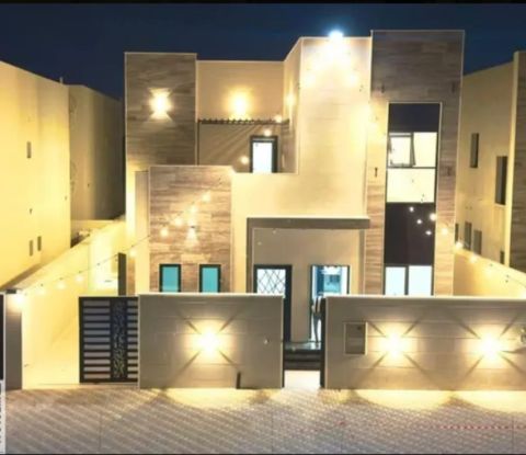 Villa for rent in the Emirate of Ajman, Al Yasmeen area, Al Saada scheme, area of 3200 feet The first to live in electricity and air conditioners, a very distinctive design, super deluxe finishing Consisting of first floor Master's room Hall and board with bathroom and washbasins Fully equipped kitchen The second floor Four master bedrooms Modern balcony A modern, sophisticated design villa