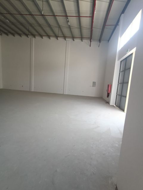 Warehouse or factory for rent Total area 3000 SqFt. 40 kVA electricity Full reinforced concrete mezzanine 12m height Double access rent AED180000 10% security deposit 3 post - dated rent checks Ajman Industrial Area 2 Contact us we. me
