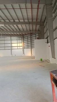 For rent large warehouse in Umm Al Quwain New Industrial Area, 97000 SqFt, 35 KW power, 12 ft height. Suitable for storage and light industry, solid floors for heavy equipment and easy truck access. Close to Al Ittihad Road. Price AED30 per SqFt. No discriminatory terms allowed