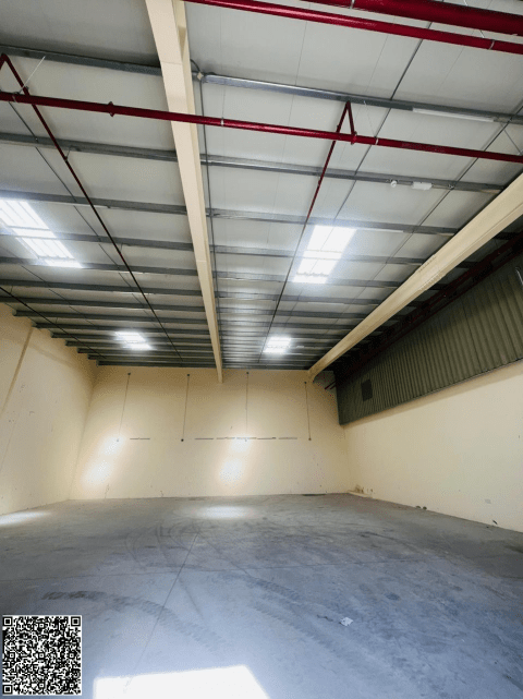 Warehouse for rent near the main road in Ajman Industrial Area. Clean and suitable for commercial activities. 3600 SqFt. Mezzanine. Modern fire protection system. Ready to operate