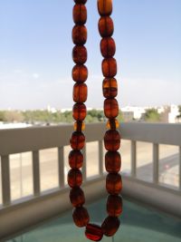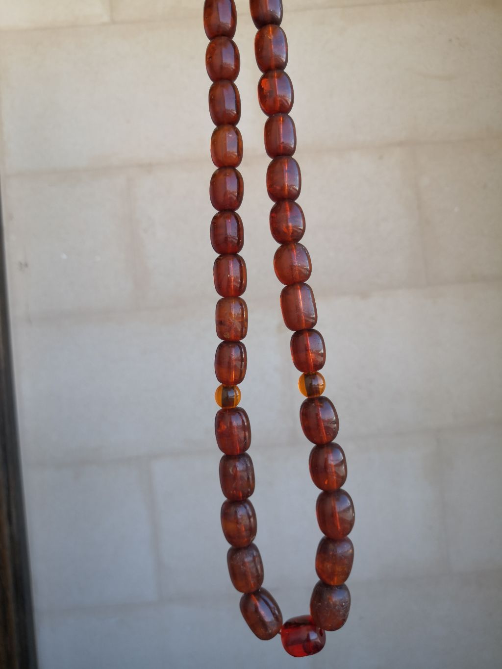 للبيع مسبحة كهرمان بلطيقي قديمة جدا صناعة يدوية 32 خرزة بوزن 54 غ مع حبة خزره واحدة مسكي للبيع ب 3000 درهم