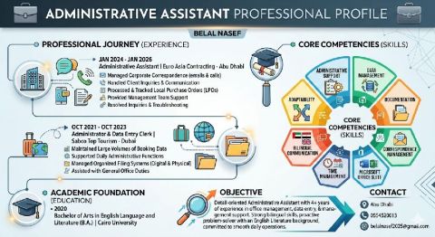 مساعد اداري بخبرة تزيد عن 4 سنوات في إدارة المكاتب، وادخال البيانات، والدعم الاداري. لدي تأشيرة إقامة خاصة بي