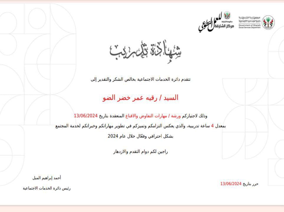 I am Rogaia Omar Khidr, with a Bachelor's in Hospital Management. I have 3 years'experience in hospital administration, 2 years in digital marketing, and currently work at a real estate company. Certified in emotional intelligence, leadership, negotiation, first aid & problem - solving. Seeking part/ full time role in admin, marketing, or customer service I can also deliver training courses in administrative