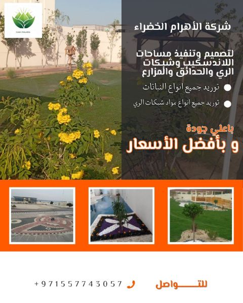 تصميم وتنسيق وصيانة الحدائق بأفضل الأسعار مع تركيب شبكات ري، زراعة الأشجار والنخيل، وتركيب العشب الطبيعي والصناعي فريق محترف يقدم لمسات ابداعية تخلي حديقتك مكان راحة وجمال