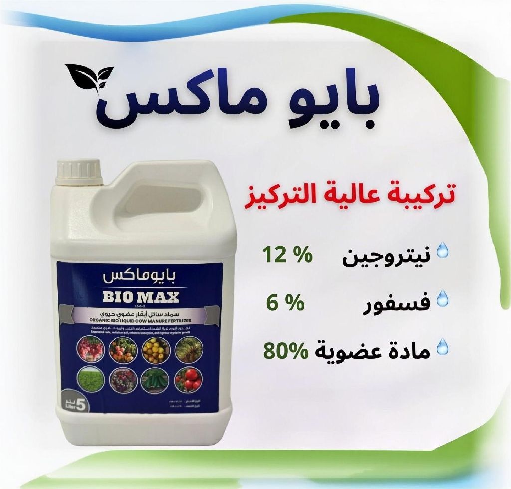 بايوماكس (BIO MAX) السماد العضوي الحيوي السائل (مستخلص أبقار) بتركيبة احترافية مركزة (12 - 6 - 0) تضمن لك نتائج سريعة وملموسة بنسبة 80 مادة عضوية مدعم بطحالب بحرية