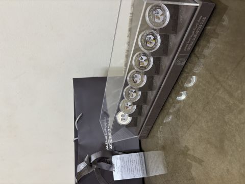 عدد 7 مسكوكات تذكارية من الفضة في حافظة وحدة ويأتي هذا الاصدار تكريما للإباء المؤسسين للاتحاد وعلى رأسهم قائد الوحدة وبأني نهضة الدولة المغفور له بإذن الله صاحب السمو الشيخ زايد بن سلطان آل نهيان طيب الله ثراه (اصدار محدود 3000) رقم القطعة 0263 (مطلوب 7000 درهم)