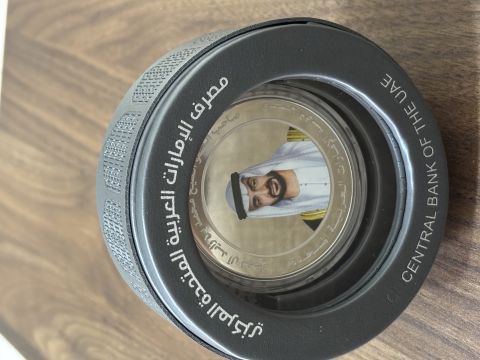 تذكارية بمناسبة مرور 50 عام على تأسيس المصرف المركزي تم اصدار عدد 3000 مسكوكة من الفضة. مطلوب 2500 درهم