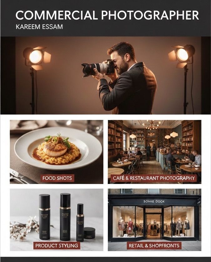 لو عندك مطعم، كوفي، محل تجاري، أو براند وتحتاج صور احترافية للمحتوى أنا جاهز أصورلك بجودة عالية وبأسلوب يناسب هوية مشروعك. باقات التصوير تبدأ من 1000 درهم فقط تصوير مطاعم وكافيهات تصوير محلات تجارية ومنتجات تصوير محتوى للسوشيال ميديا تعديل احترافي + تسليم سريع متواجد في العين أبوظبي