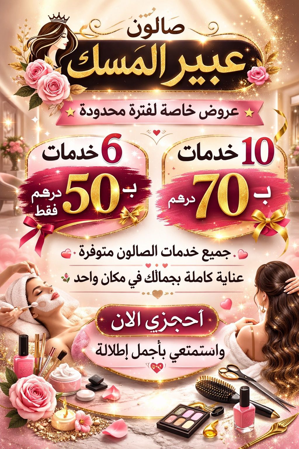 صالون عبير المسك يستقبل حجوزات من اليوم جميع خدماتنا كلها بخدمة واحدة
