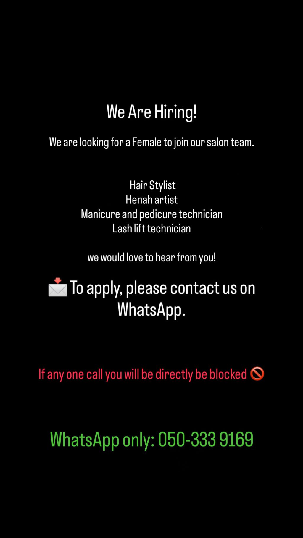 I am searching for employees If you willing to learn and join the beauty industry but you need opportunities contact me Instant hiring Contact on WhatsApp only Moroccan bath/ Turkey bath/ delkha