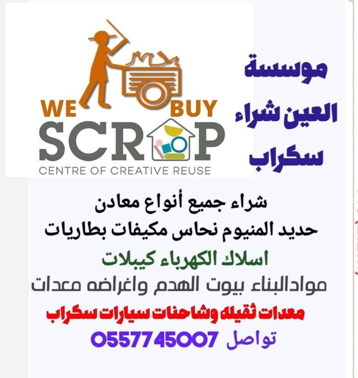 نشتري جميع أنواع سكراب خردة حديد ألومينيوم نحاس مكيفات بطاريات مواد البناء بيوت الهدم وأغراضه معدات مستودعات محلات تصفية البضاعة سيارات سكراب