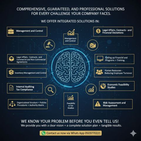 الإدارة والكنترول المالية - الموازنات - والانحرافات المالية الشؤون القانونية والعقود والاتفاقيات التجارية والغير تجارية إدارة ومراقبة المخزون التدقيق والمراجعة الداخلية تهيئة البرامج المالية والادارية + تدريب الضرائب والامتثال الضريبي الموارد البشرية - تقليل دوران الموظفين الهيكلة الوظيفية + السياسات والاجراءات د مصفوفة الصلاحيات دراسات الجدوى الاقتصادية تقييم المخاطر
