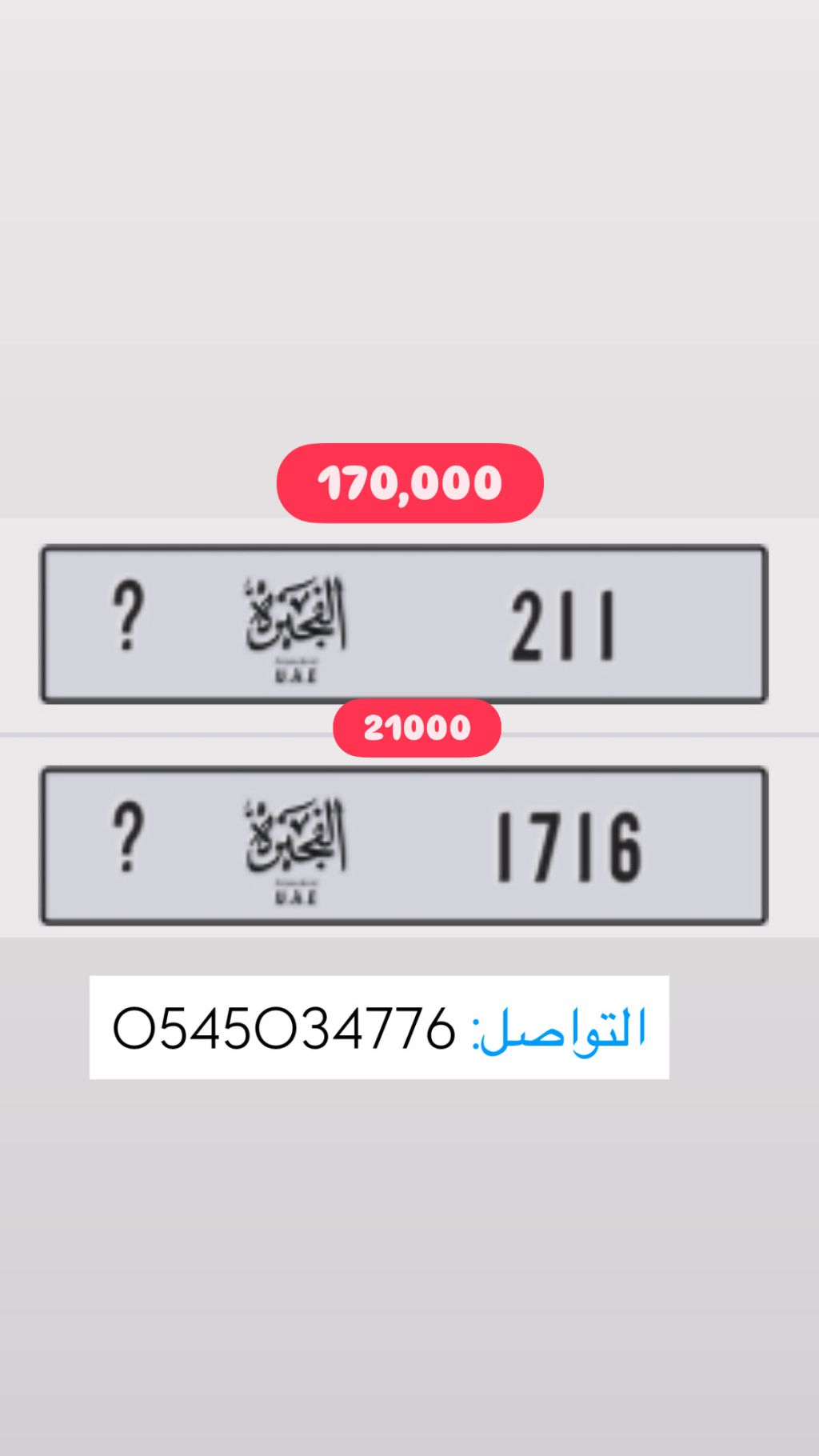 أرقام الفجيرة مميزة للبيع 211 و1716 للتواصل