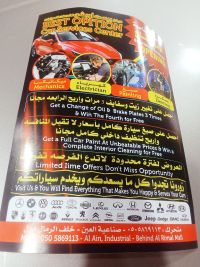 تم افتتاح كراج في العين بست اوبشن لجميع أعطال السيارات وصيانة السيارات ثم صبغ ثم سمكرة ثم ميكانيكي ثم برمجة ثم تنظيف وتلميع وتركيب الجلاد والمخفي وكل ماهوا يخص السيارات شكرا ومعمول عروضات وخصومات لفترة محدوده ثم ضمان 3 سنوات علي الصبغ السيارة