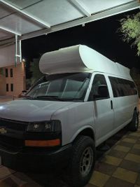 2013 Chevrolet Express Van Caravan - Model: Chevrolet Express Van Single without 4WD - Model Year: 2013 - Length: Approximately 6 meters - Manufacturing Year: 2022 - All caravan appliances are working: Yes - Any defects: No - Number and type of AC units: One 1-ton AC unit - Generator type: Edon - Size: 3800-3500 - Interior equipment and power: Sleep capacity for 2 adults - AC units: One 1-ton AC - Complete bathroom with shower - Storage