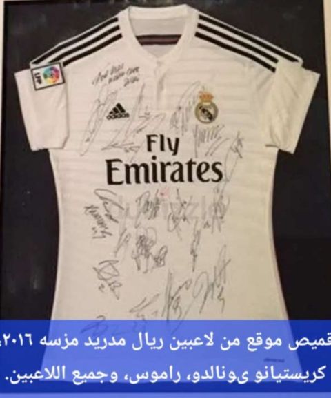 قميص ريال مدريد الأصلي - موسم 2016 - موقع من اللاعبين للبيع قميص ريال مدريد الأصلي لموسم 2016 موقع من نجوم الفريق بالكامل، ومنهم كريستيانو رونالدو سيرخيو رام وس بيبي وجميع لا عبي الفريق في ذلك الموسم القميص بحالة ممتازة توقيعات أصلية (مناسب لهواة الاقتناء والجامعين) قطعة نادرة لهواة ريال مدريد السعر 15000 درهم اماراتي قابل للتفاوض للجادين فقط
