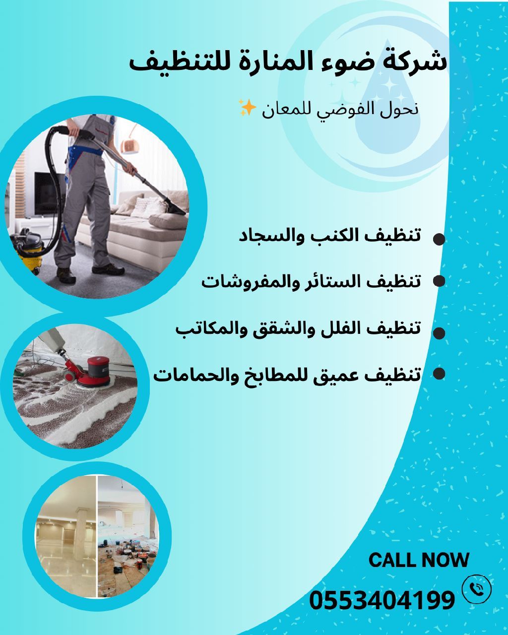 شركة ضوء المنارة لتنظيف (الكنب - السجاد - الستائر - تنظيف المكاتب والفلل - تنظيف خزانات المياه بكافة أنواعه) خدمات ممتازة وعروض مستمرة