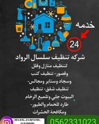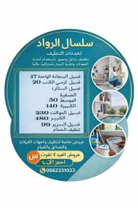 مرحبا بكم خصم 30% نعرض بعض خدماتنا من تنظيف وتعقيم ومكافحة الحشرات للمنازل والفلل والمكاتب والشركات حيث نقوم بازالة البقع من السجاد والستائر والكنب وجميع أنواع الأثاث وشفط الأتربة وتركها مجففه ومعقمه من الجراثيم والبكتريا بمواد كيميائية متخصصه للتنظيف وموافق عليها من البلدية تنظيف المطابخ والحمامات وتعقيمها أيضا × مكافحة جميع الحشرات واستخدام الجيل الأمريكي