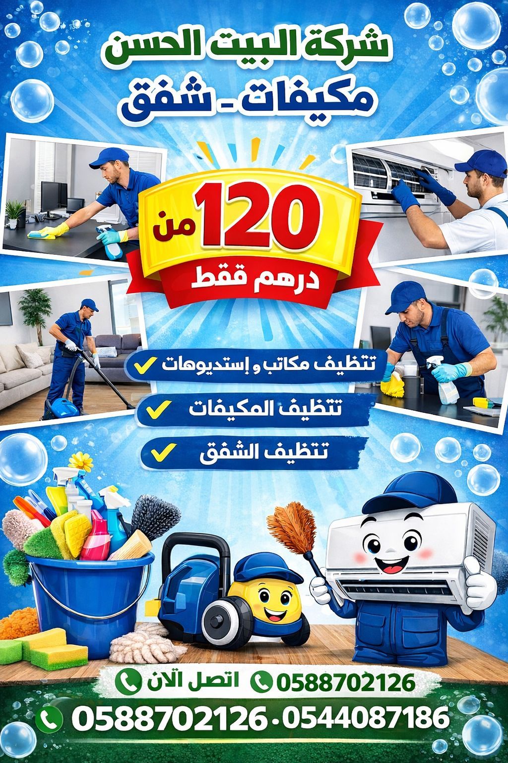 تنظيف كامل لكل أنواع الشقق والمكاتب والاستوديوهات والمكيفات وجميع كافة البنايات والغرف تواصل نصلكم أينما كنتم