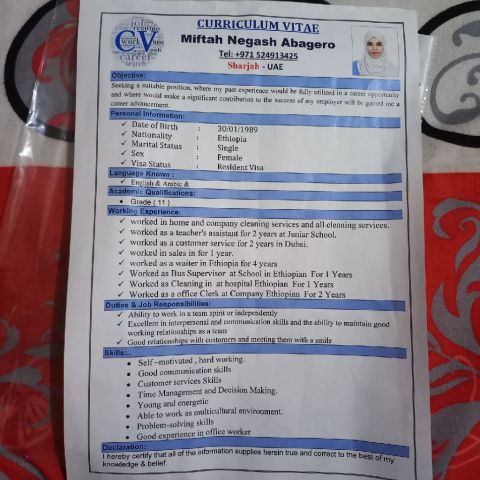 My name is Mussa Mustefa I am from Ethiopian I need job please call me oll Emirates
