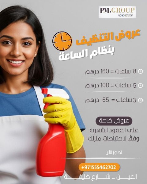 مطلوب عاملة نظافة لمكتب في العين - منطقة الربينة العمل يشمل تنظيف ومساعدة بسيطة في سكرتارية يشترط الالتزام، الخبرة، وإقامة سارية داخل الدولة