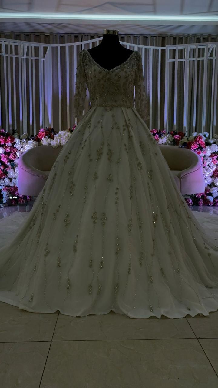 فستان زفاف مع طرحه - مقاس M السعر 3200