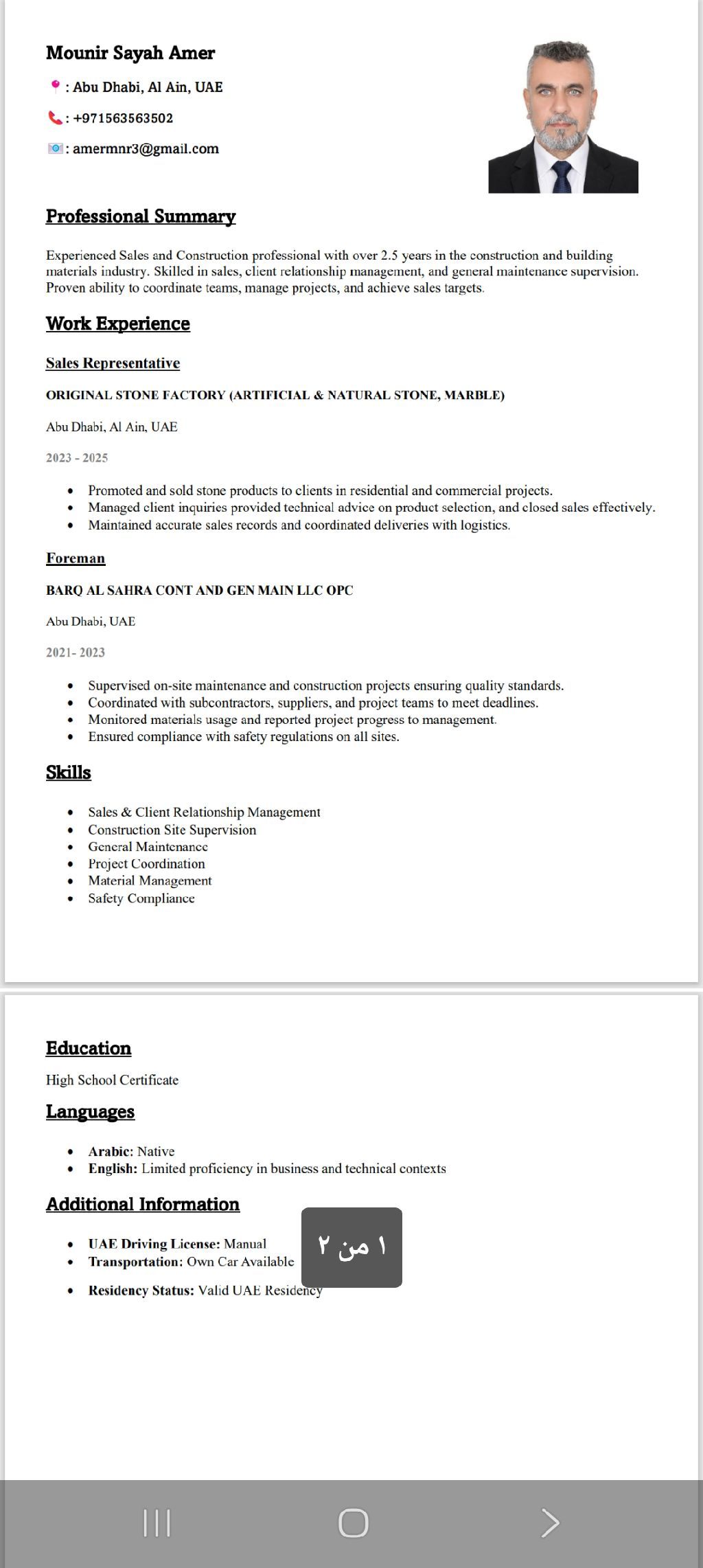 يطلب عمل مقاولات في العين الإمارات