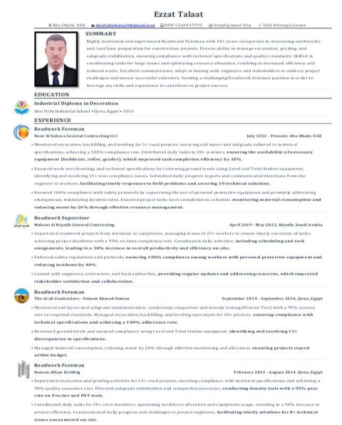 الاسم عزت طلعات عبد الرازق مشرف طرق فورمان خبرة 8 في مشاريع الطرق سنوات ويوجد ليسن اماراتي ابحث عن فرصة عمل