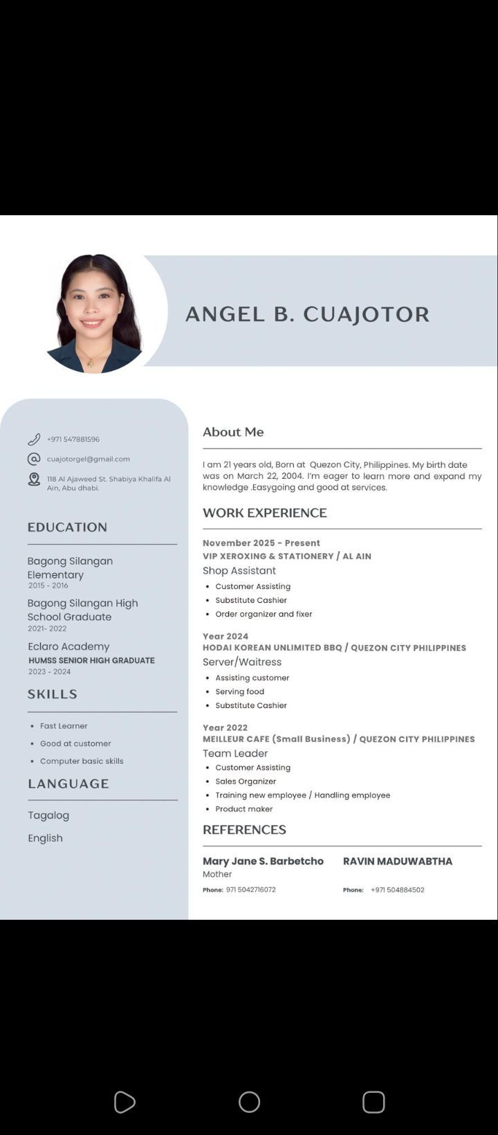 مرحبا أنا فتاة فلبينية ابحث عن عمال في مجال مدخل بيانات أو رسيشن داخل العين