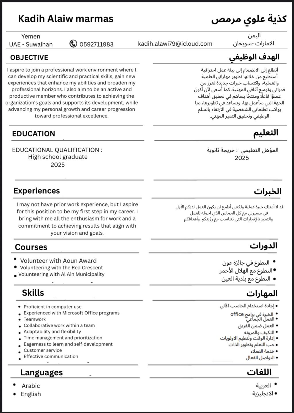 أنا اسمي كذية علوي ابحث عن وظيفة بداوم كامل أو جزئي، استقبال عيادة، أو شركة، لدي خبرة في تصميم البوسترات وخبرة أيضا في مجال والبرامج الاجتماعية