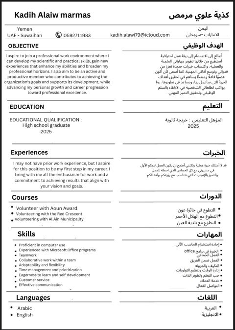 شاب مصري أحمل إقامة وليسن وامتلك سيارة أتحدث العربية والانجليزية وع دراية بأعمال الوارد والاكسل ابحث عن عمل مناسب