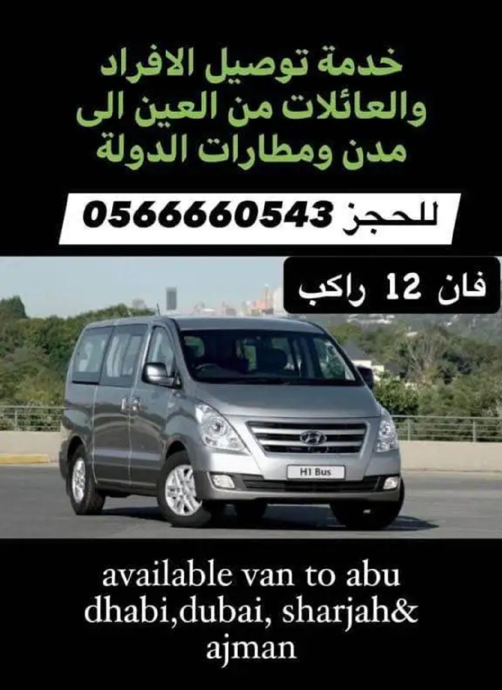 شركة تواصل السلامة تقدم لك خدمة نقل مريحة وآمنة داخل مدينة العين والى جميع أنحاء الامارات ومطاراتها. سواء كنت مسافرا فردا أو مجموعة، لدينا الأسطول المناسب لك حافلات فاخرة تصلح ل 50 راكب، وحافلات متوسطة ل 34 راكب، وسيارات ميني فان ل 11 راكب. مميزاتنا انترنت مفتوح سائقون محترفون أسعار تنافسية حجز سهل وسريع خدمة عملاء على مدار الساعة مرونة في المواعيد احجز رحلتك الآن واتصل