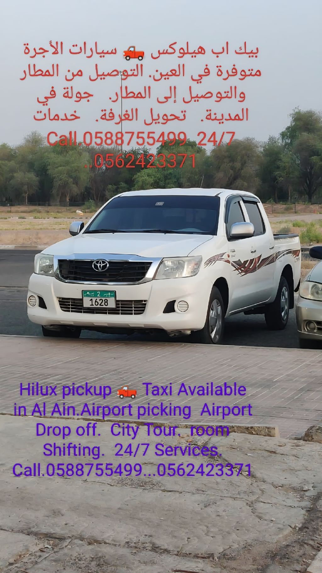 Hilux pickup Taxi Available in Al Ain. Airport Picking and Airport Drop - off. City Tour. All Delivery services Available