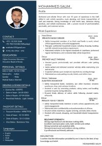 I am Mohammed salim from india (Kerala) I have 16 years experience in UAE 10 years working as a house driver and 3 years salesman in the bookshop 1 years working valet parking in Abu Dhabi I can speaking English and Arabic