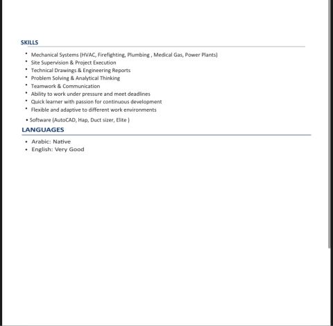العنوان مهندس ميكانيكا موقع - Plumbing / HVAC/ MEP الوصف مهندس ميكانيكا حديث تخرج، ابحث عن فرصة عمل مهندس موقع بدوام كامل في مجال الأعمال الميكانيكية. لدي خبرة عملية في مشروع Bloomfield - مدينة المستقبل - مصر في مجال أعمال أل Plumbing (تنفيذ ومتابعة بالموقع) لدي معرفة جيدة بأنظمة Plumbing - HVAC - Fire Fighting حاليا متواجد في عجمان وجاهز للعمل
