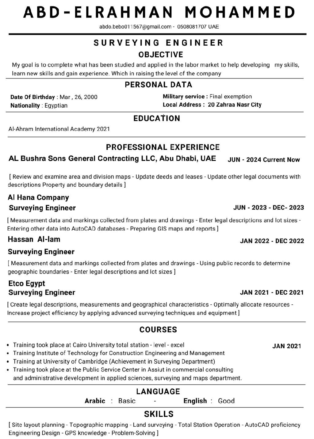 أنا مساح خبرة 6 سنين إنشاءات وطرق ابحث عن عمل أنا الآن داخل العين الهير سكن إيجار