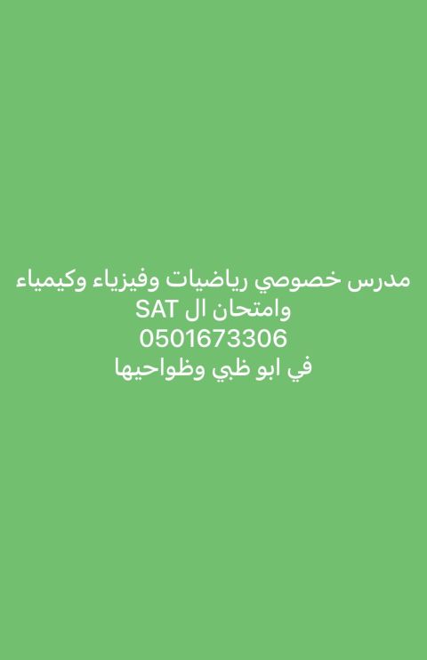 مدرس مستعد لاعطاء دروس math & physics & chemistry & SAT لكافة المراحل الاعدادية والثانوية والجامعية منهج وزاري وأمريكي وبريطاني والمدارس العسكرية ومدارس الشراكات والمدارس التقنية والتطبيقية وأدنوك وشويفات في أبوظبي وضواحيها