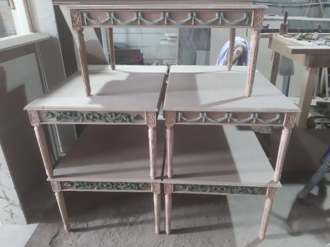 طاولات صغيرة وكبيرة مقاس 45*45 و70*100 وكنصور 110*40 سم شغل ممتاز وأسعار جيدة وأيضا تنفيذ أي قطع أثاث منزلي علي الصورة وعمل فرم الديكور للفلل والقصور علي المخطط