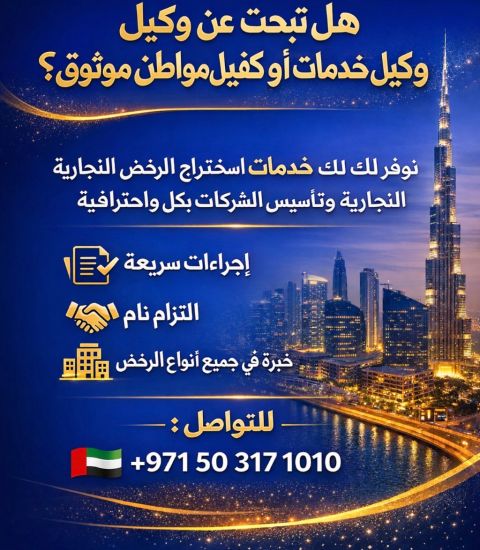 متاح وكيل خدمات لاصدار وتجديد جميع الرخص التجاريه دبي وكامل الامارات