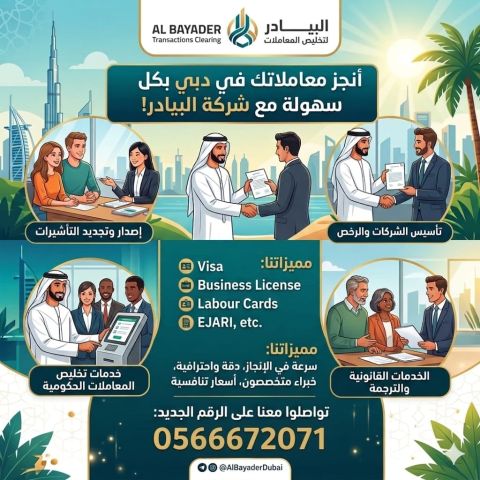 هل تبحث عن السرعة والدقة في انجاز معاملاتك شركة البيادر توفر لك حلولا متكاملة لتخليص كافة المعاملات الحكومية في دبي بأقل وقت وجهد تواصل معنا في أي وقت على مدار 24 ساعة